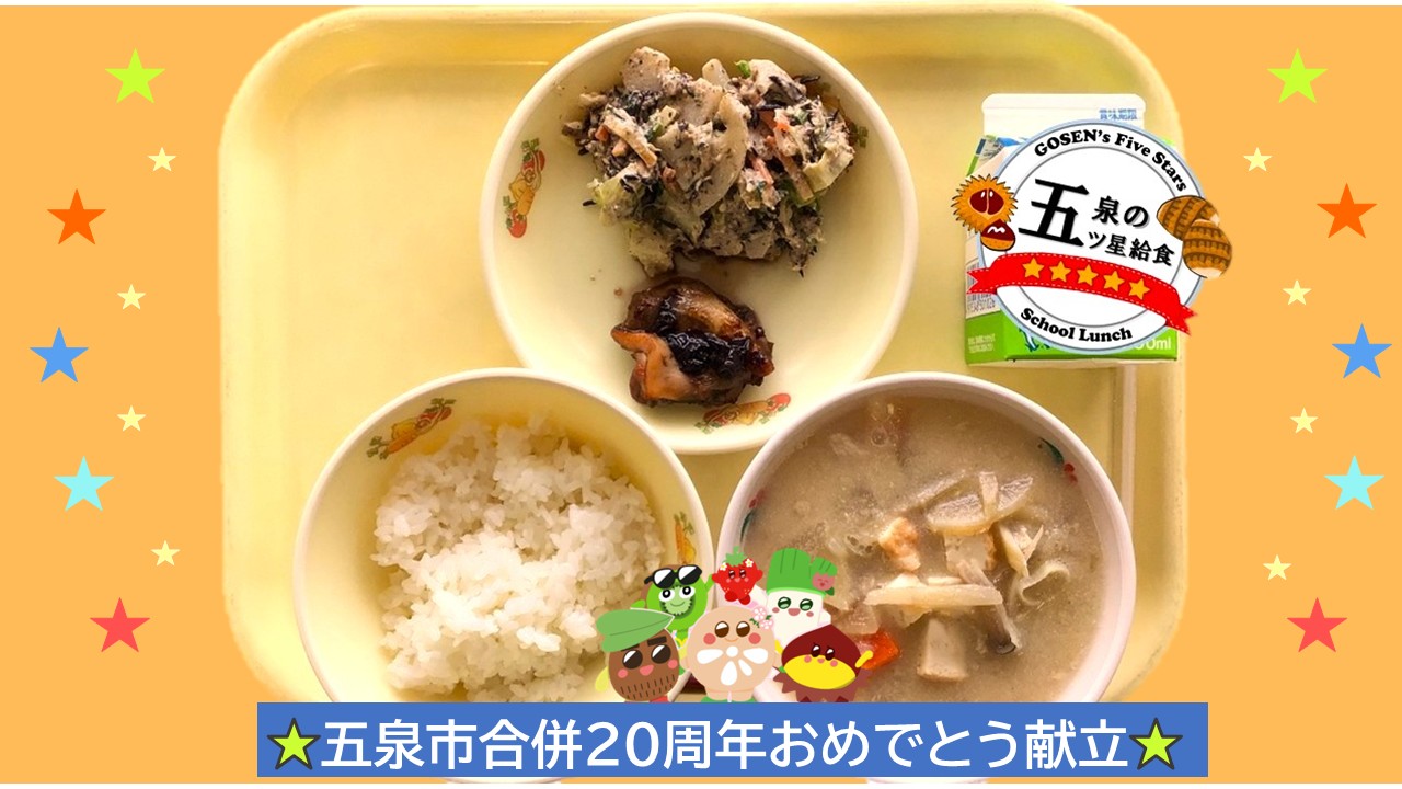 五泉市のうんめぇ給食は今回、五泉の五ツ星給食にリニューアルしました。