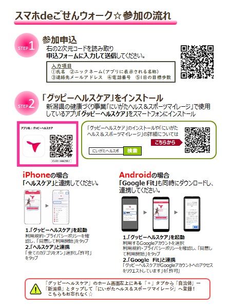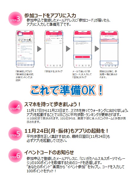「スマホdeごせんウォーク秋」は、にいがたヘルス&スポーツマイレージのポイント対象イベントです