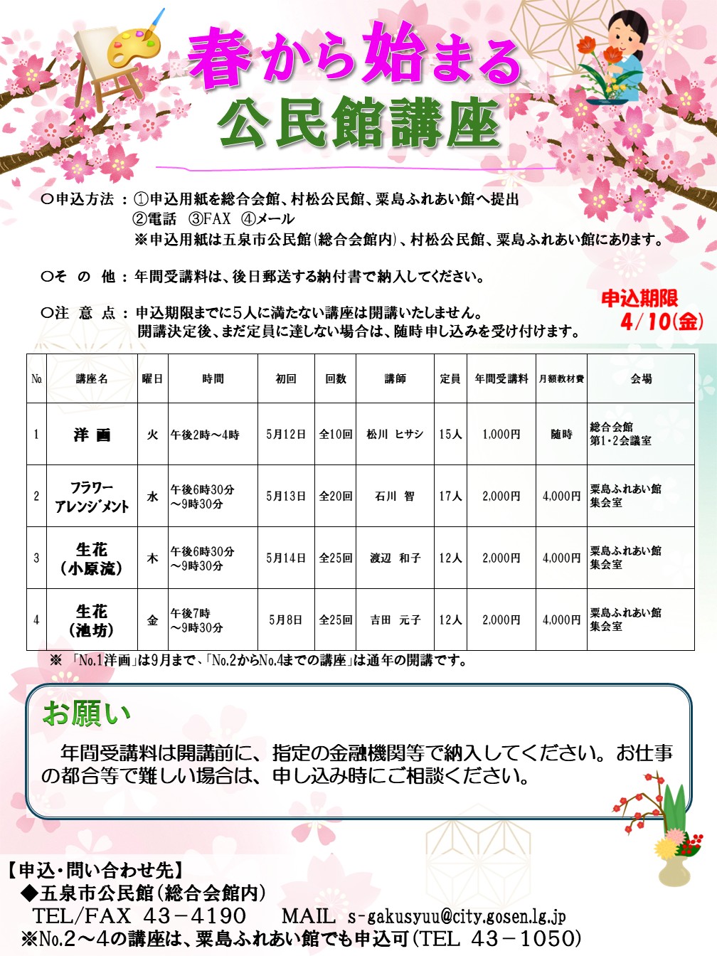 春から始まる公民館講座 参加申込書付きチラシ (PDFファイル: 357.6KB)